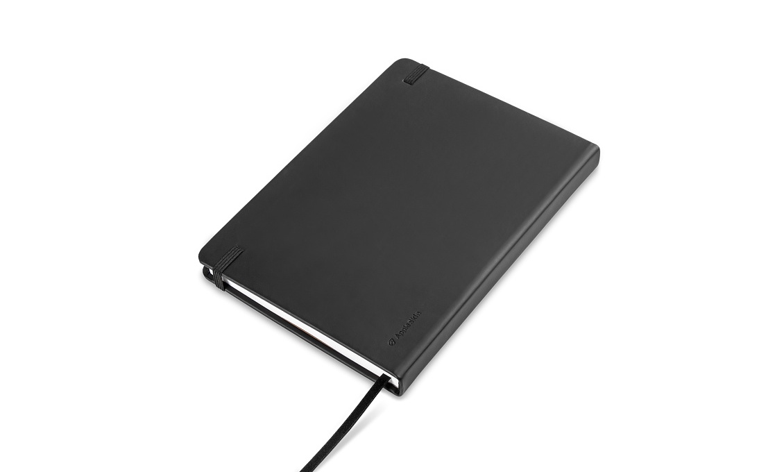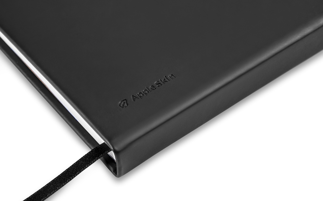 Twarda okładka wykonana jest z materiału Apple Skin – zrównoważonego, wegańskiego materiału podobnego do skóry, który powstaje z odpadów przemysłu jabłkowego (skórki i gniazda).