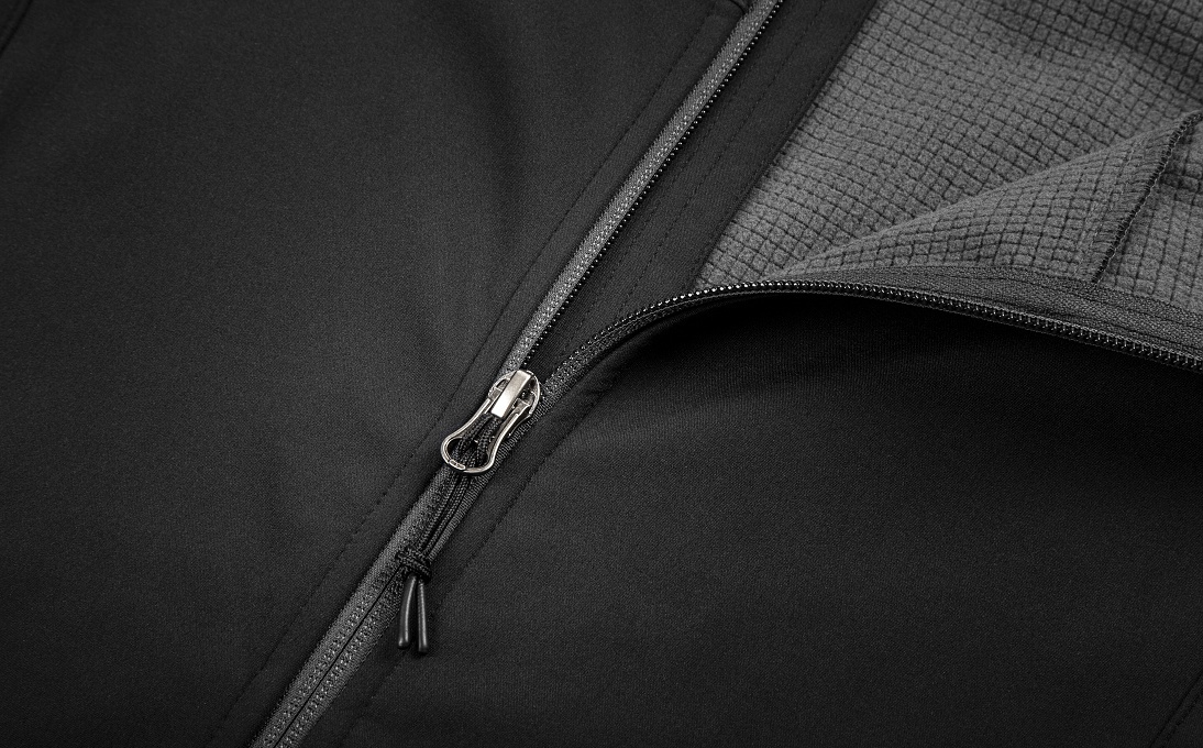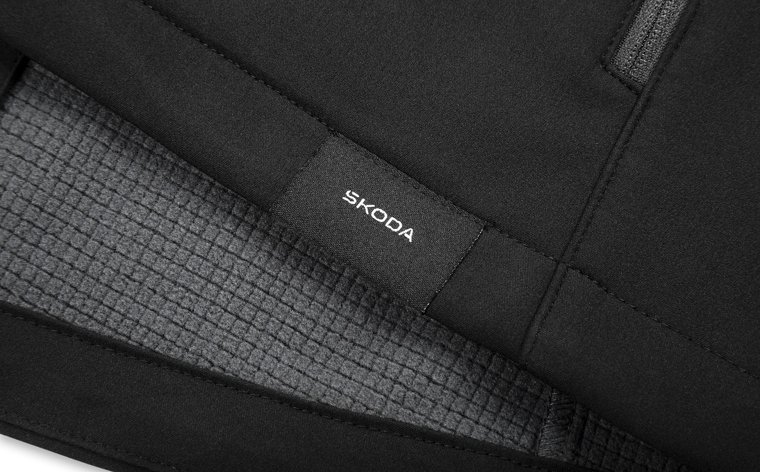 Antracytowy kolor, markowe zamki YKK, tkana metka Škoda i naszywka Let’s Explore nadają kurtce nowoczesny, outdoorowy wygląd.