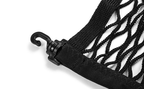 Mocuje się za metalowe uchwyty mocujące i haczyki wiszące w bagażniku.