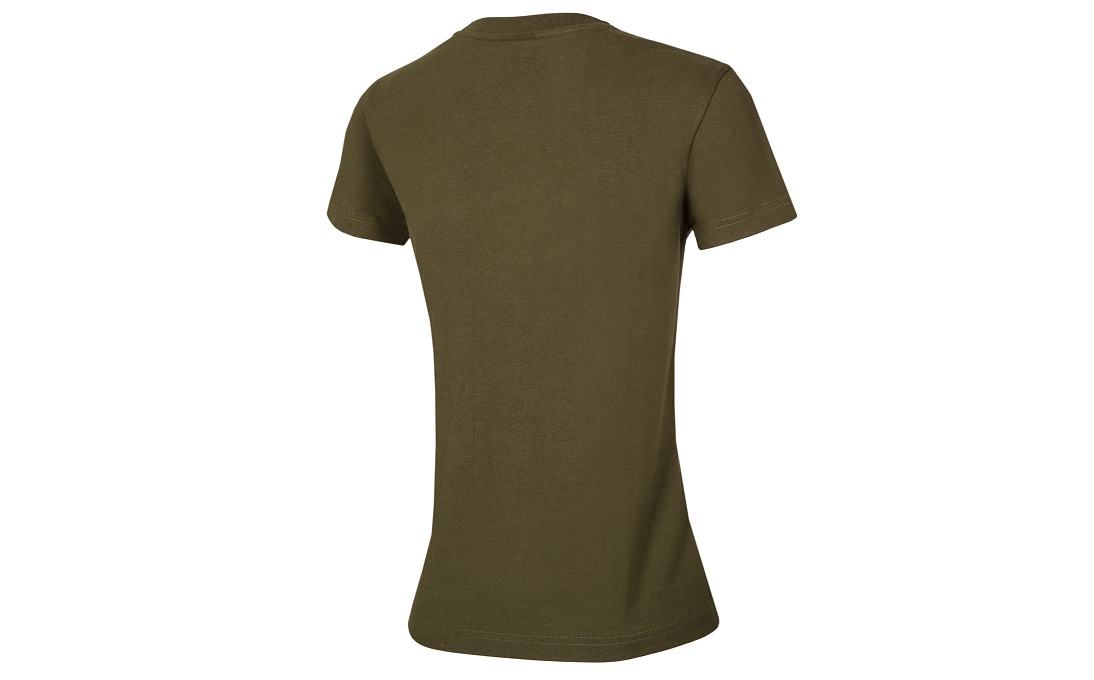Odkrywaj świat w dobrym stylu – damska koszulka w modnym kolorze khaki z wyrazistym napisem LET'S EXPLORE z przodu to idealny wybór dla wszystkich kobiet, które kochają przygody – zarówno w mieście, jak i na łonie natury.